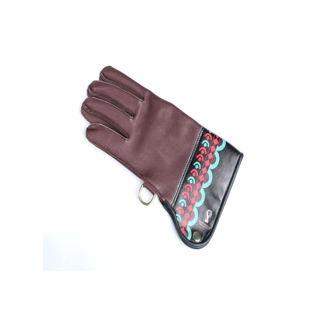 الدس الخاص لحمل الصقور مصنوع يدوياً من جلد الغزال مع شعار كأس العالم الرسمي