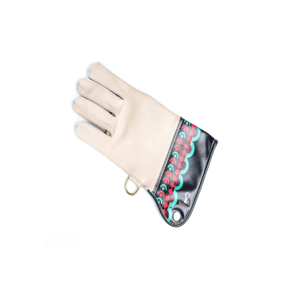 الدس الخاص لحمل الصقور مصنوع يدوياً من جلد الغزال مع شعار كأس العالم الرسمي