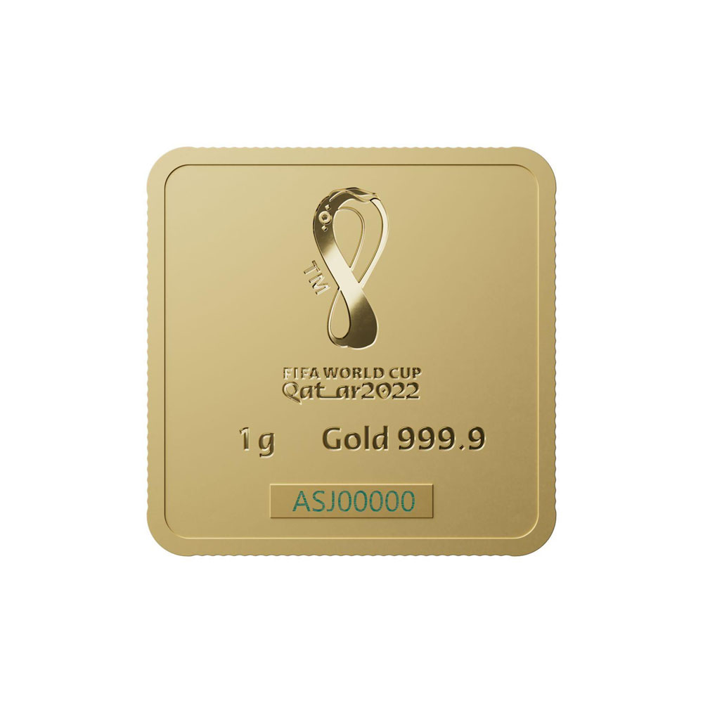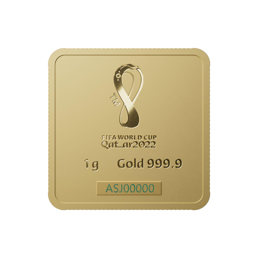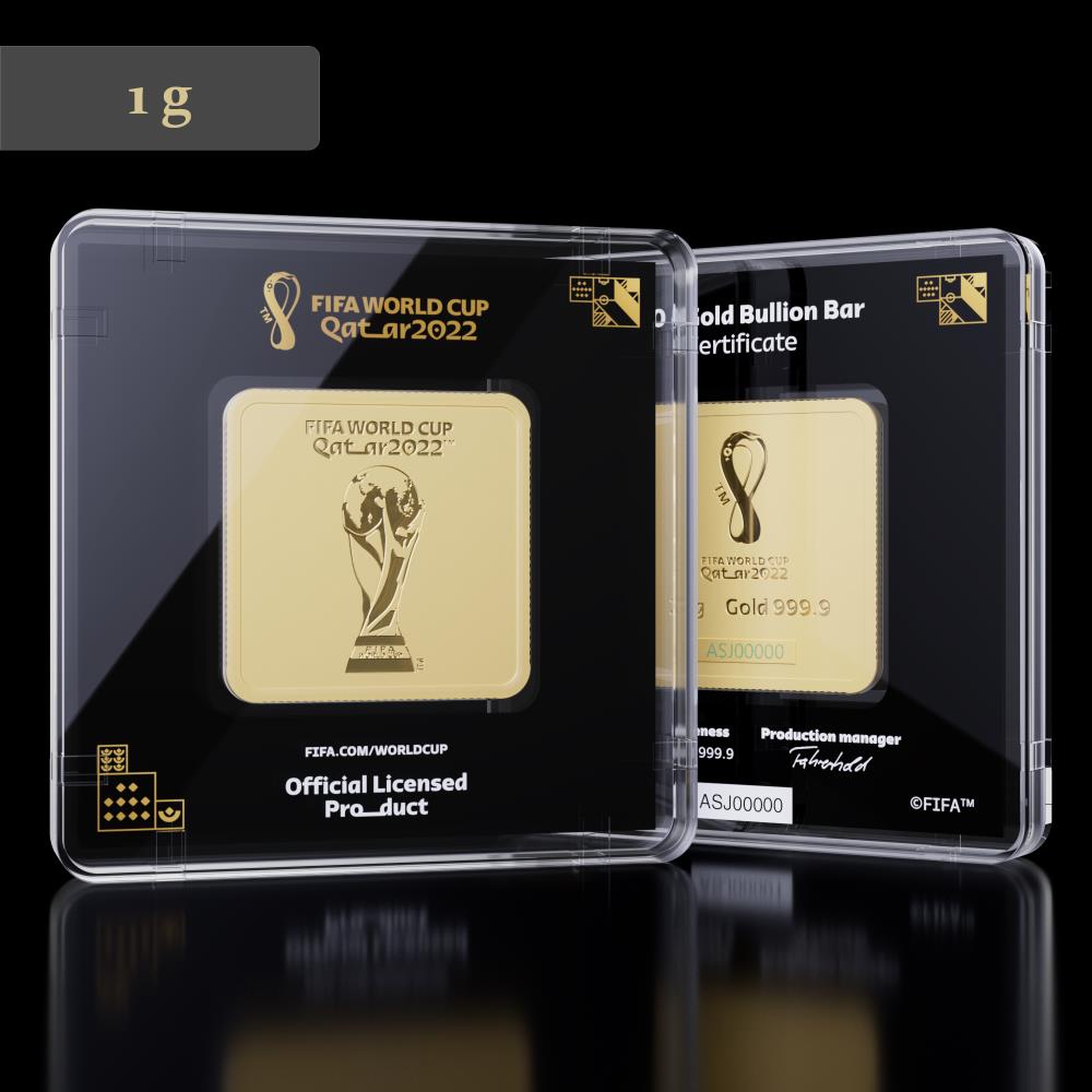 منتج FIFA المرخص ️ - سبائك ذهبية مصممة بشكل فريد محفور عليها الكأس الأيقوني والشعار الرسمي من كأس العالم FIFA قطر 2022 ™