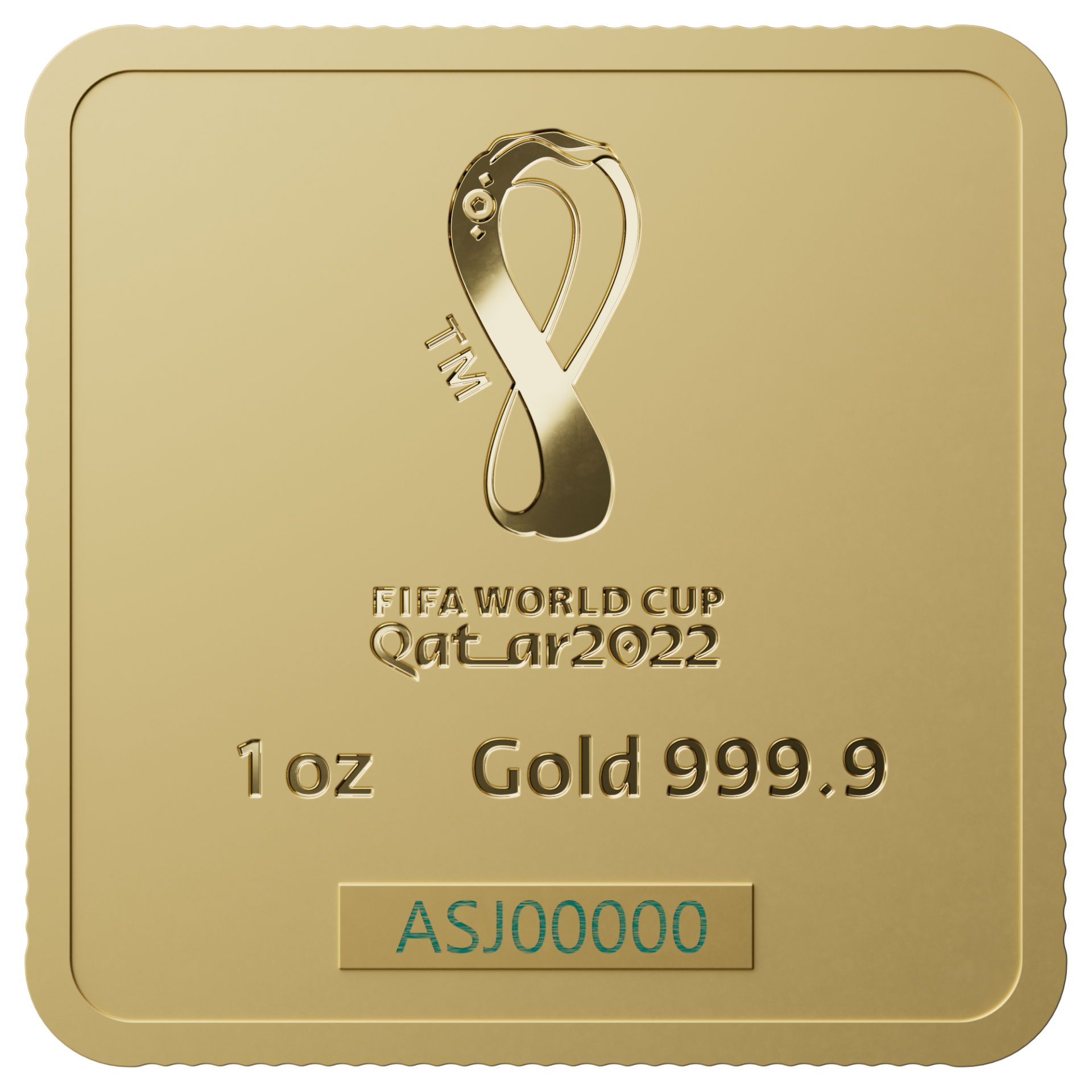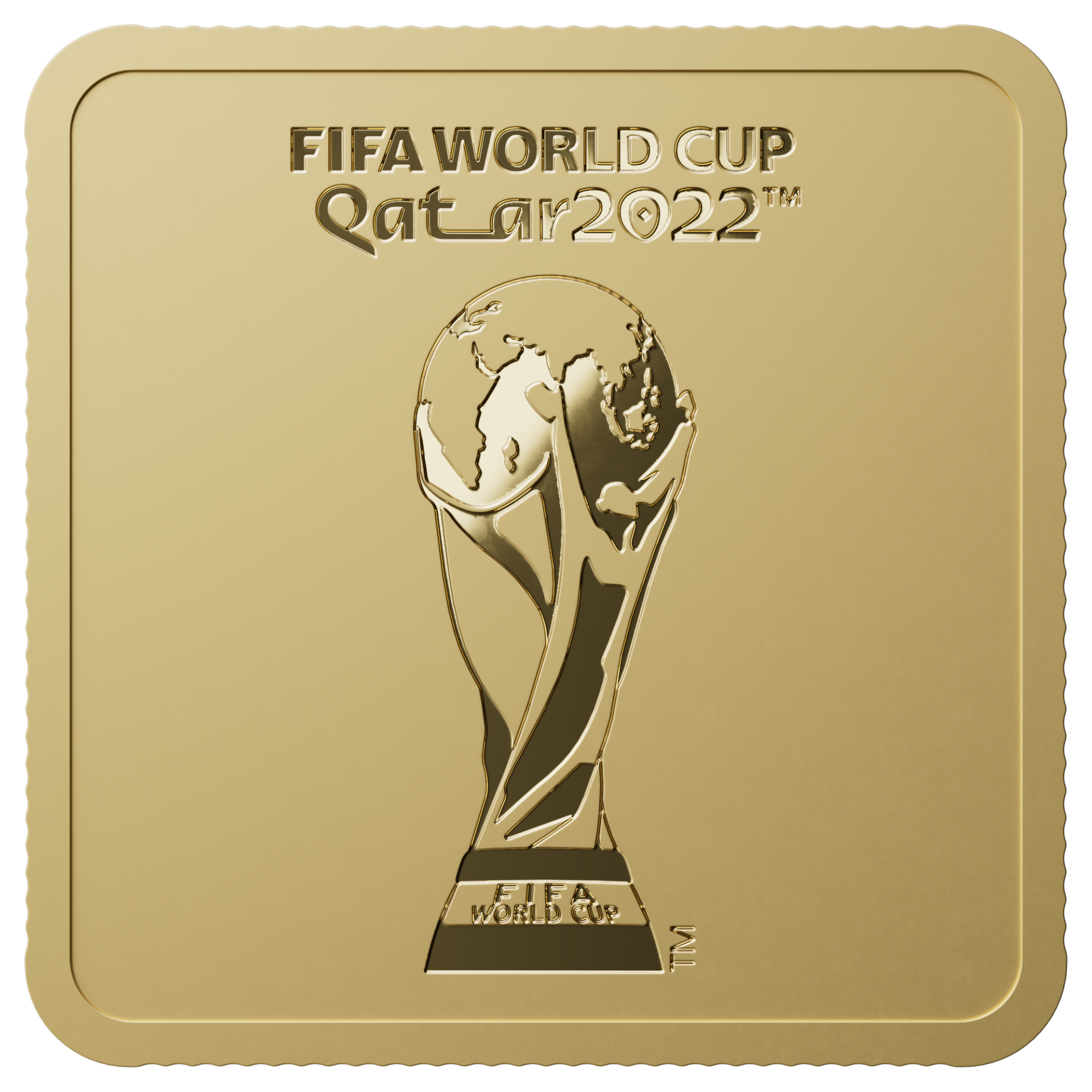 منتج FIFA المرخص ️ - سبائك ذهبية مصممة بشكل فريد محفور عليها الكأس الأيقوني والشعار الرسمي من كأس العالم FIFA قطر 2022 ™