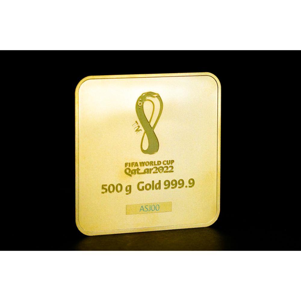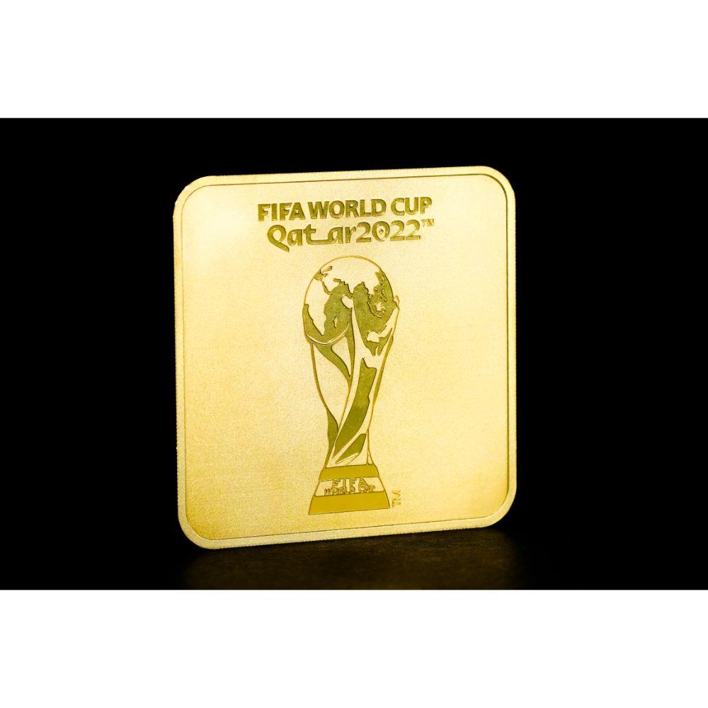 منتج FIFA المرخص ️ - سبائك ذهبية مصممة بشكل فريد محفور عليها الكأس الأيقوني والشعار الرسمي من كأس العالم FIFA قطر 2022 ™