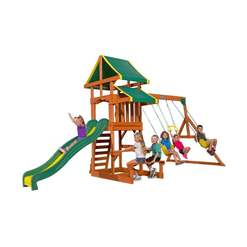تحتوي مجموعة الألعاب الخشبية توكسون التي يتم الاستمتاع بها في الخارج على سطح خشبي علوي ليُغطي المنطقة السفلية من اللعبة أيضاً. تحتوي مجموعة الأرجوحة الخشبية على اثنين من أرجوحات يتم تثبيتها بالحزام وقضيب أكروبات رياضي للحفاظ على توازن الأرجوحة ويساعد على حمل الأرجوحة لثلاث أطفال في وقت واحد. تسلق اللعبة إلى السطح عن طريق السلم/ الجدار الصخري ثم انزلق إلى أسفل عن طريق المزلقة التي تتميز بالسرعة والسلامة. توفر اللعبة حامل للوجبات الغذائية التي يُمكنك أن تتركها لحين تناولها. نقدم لك سنوات من المرح والمتعة التي تأتي مجموعتنا للعب في الخارج ذو القيمة الرائعة.