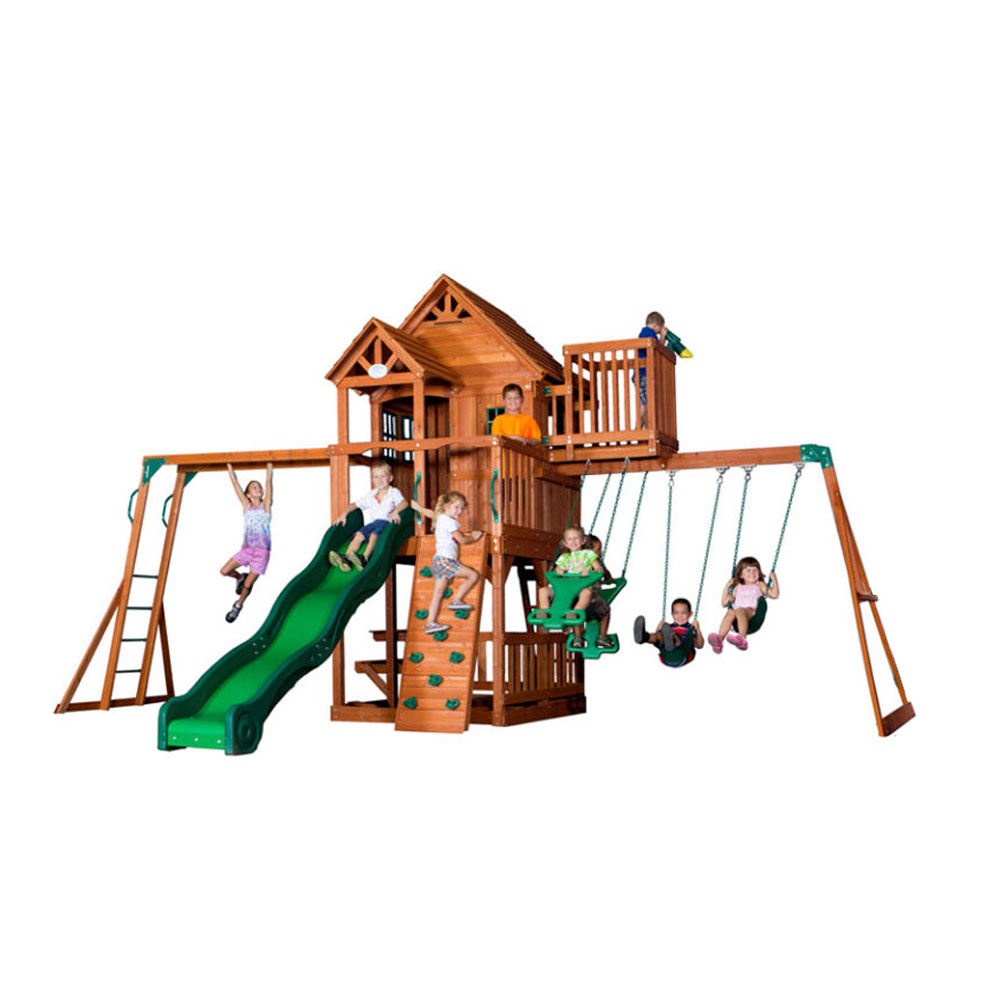 لعبة سكاي فورت IIسترفع من خيال أطفالك واستمتاعهم بالمناظر الطبيعية في آن واحد. تتكون اللعبة من النادي العلوي وشرفة فسيحة وعش الغراب والتلسكوب الخاص، ستشعر كما لو أنك في مسرحية مبهرة عندما تشاهد أطفالك وهم في قلعة خشبية خاصة بهم. توفر اللعبة الكثير من المرح والمتعة والأمان أيضاً عند التنقل في هذه القلعة عن طريق: قضبان أكروبات رياضي حيث تُستخدم للتأرجح مباشرة إلى النادي العلوي، ويسمح الجدار الصخري لأطفالك بالصعود مباشرة إلى الشرفة، وتوفر لهم مزلقات سريعة بطول 10 أقدام أن يعود إلى أدراجهم مرة أخرى.