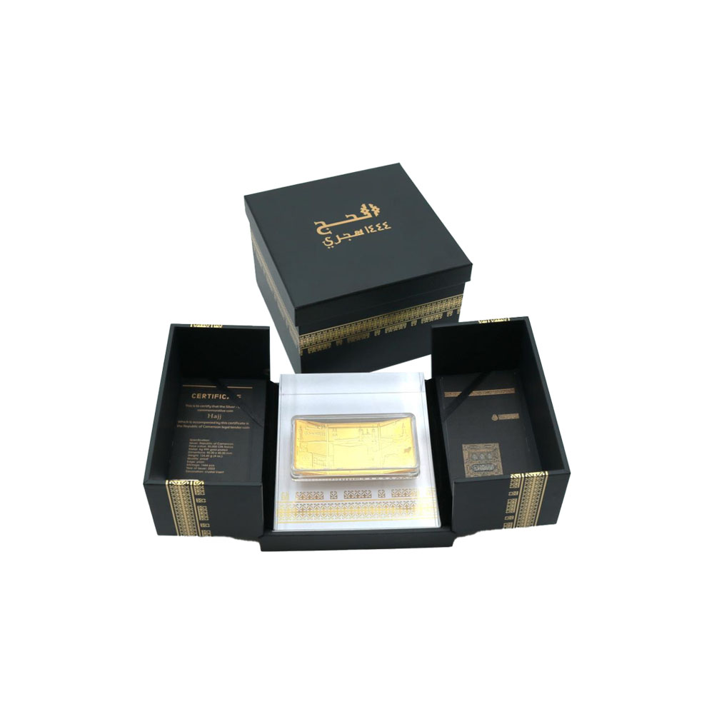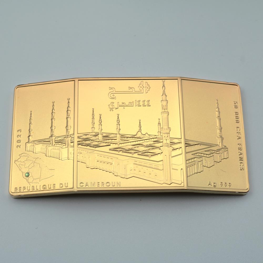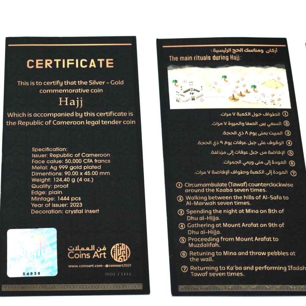 تصميم العملة مستوح من شعائر الحج المقدس ، "عملة الحج 1444" تذكار مثالي للاهداء بين العائلات والأصدقاء المسلمين ، وهو يجسد جوهر هذه الرحلة الروحية.