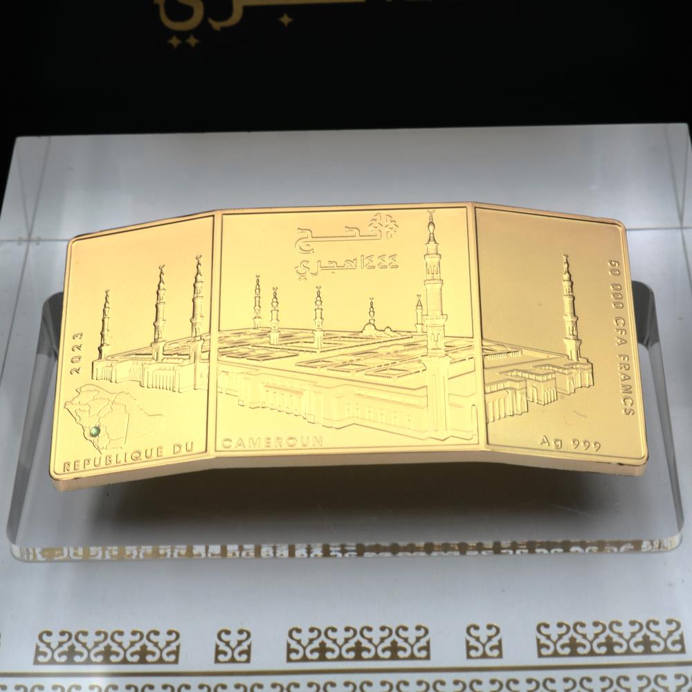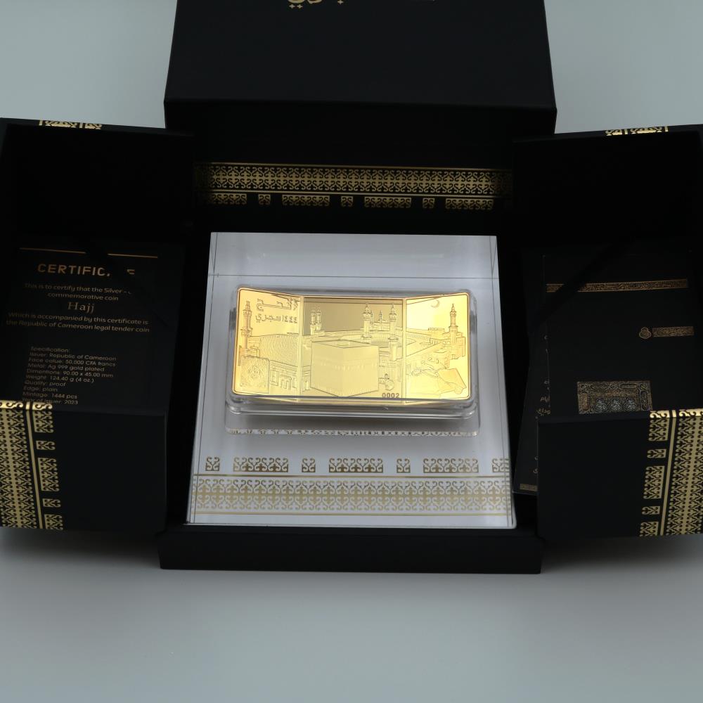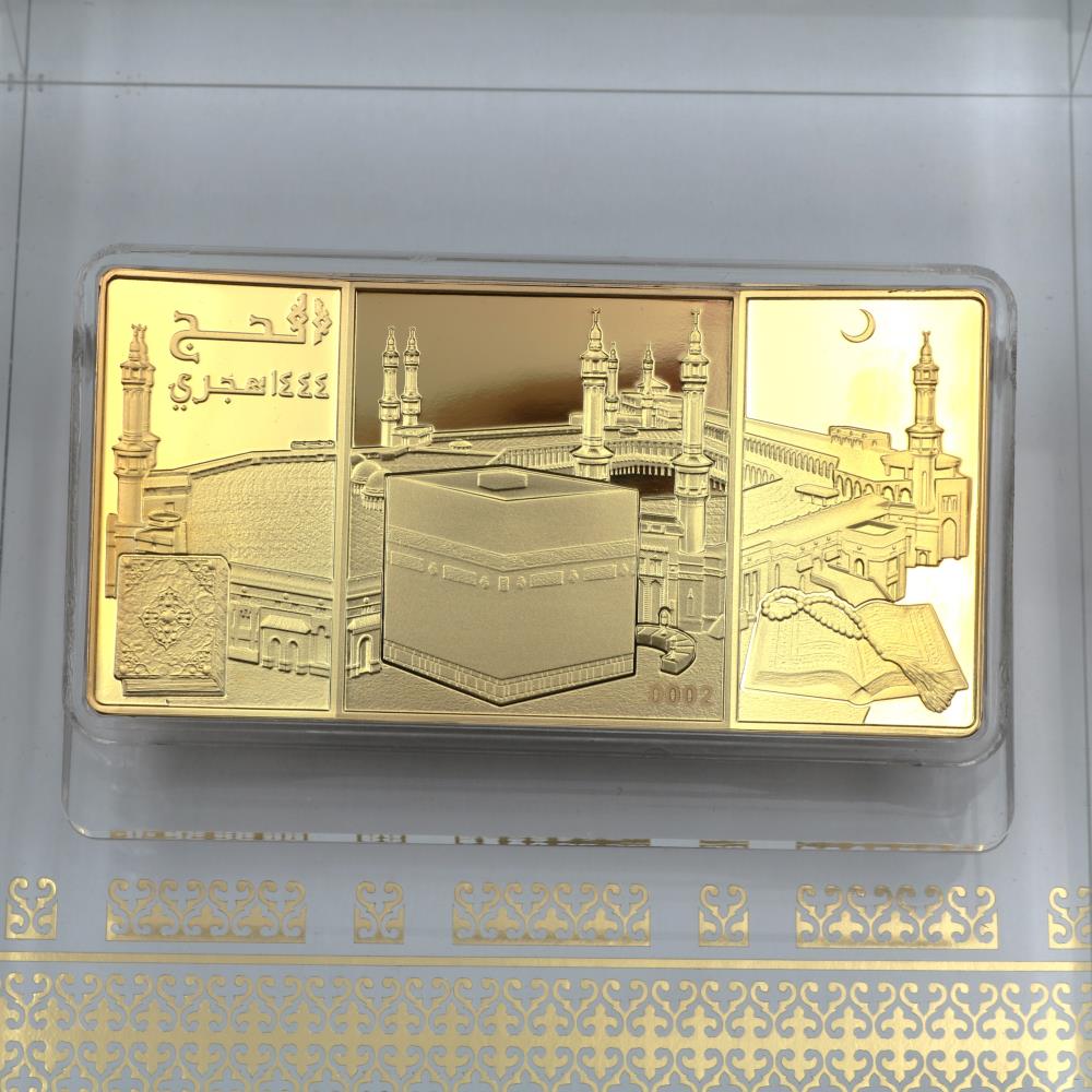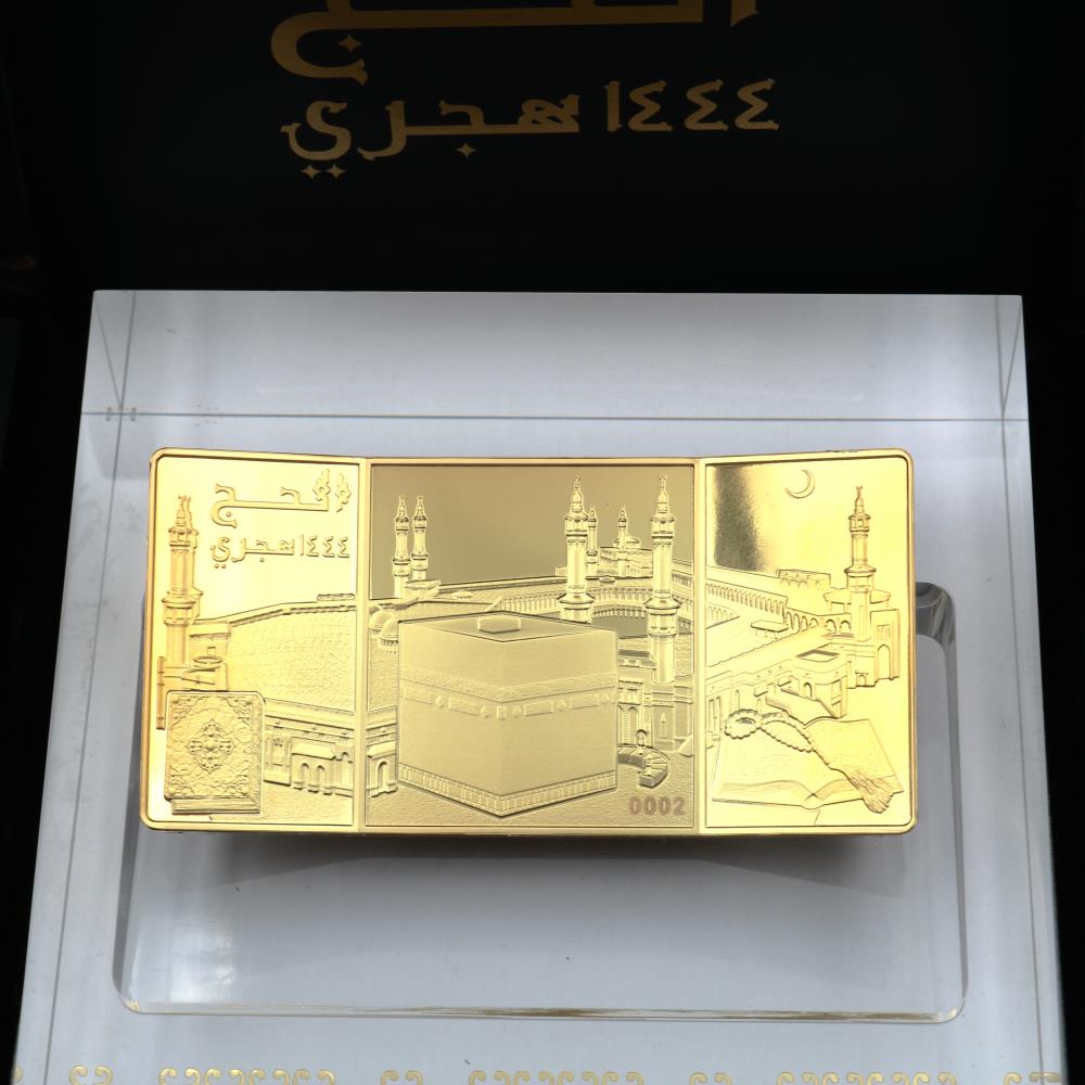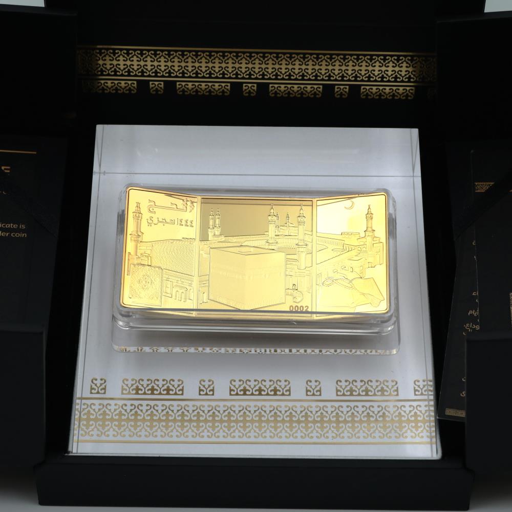نقدم لكم حصريا "عملة الحج 1444" - تحفة فنية اسلامية مذهلة مصنوعة من الفضة الخالصة، حجم 4 أونصة - 310 ملج مطلية بذهب عيار 24 قيراط. يأتي هذا الإصدار المحدود برقم تسلسلي فريد من 1 إلى 1444. الكمية المتاحة للبيع 800 متاحة للبيع من خلال بريد قطر.
