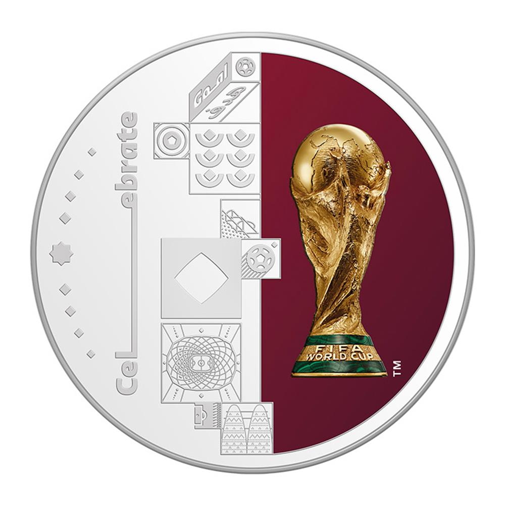 ميدالية "Cheer" المرخصة رسميًا من الفيفامعدنية مطلية بالفضة عيار 999المقاس: 44 مليمترصادرة عن مصرف قطر المركزي.